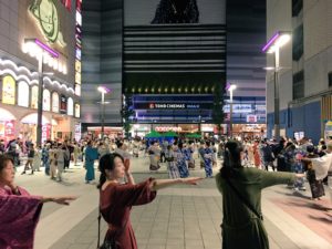 新宿区の歌舞伎町にある歌舞伎町シネシティ広場で行われる、歌舞伎町まつりのプログラムの最後を飾る盆踊りです。